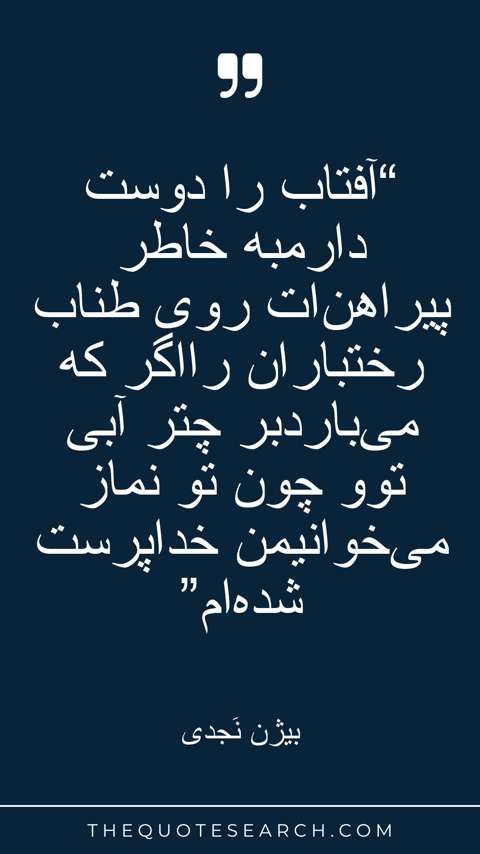 “آفتاب را دوست دارمبه خاطر پیراهنات روی طناب رختباران رااگر که میباردبر چتر آبی توو چون تو نماز میخوانیمن خداپرست شدهام”