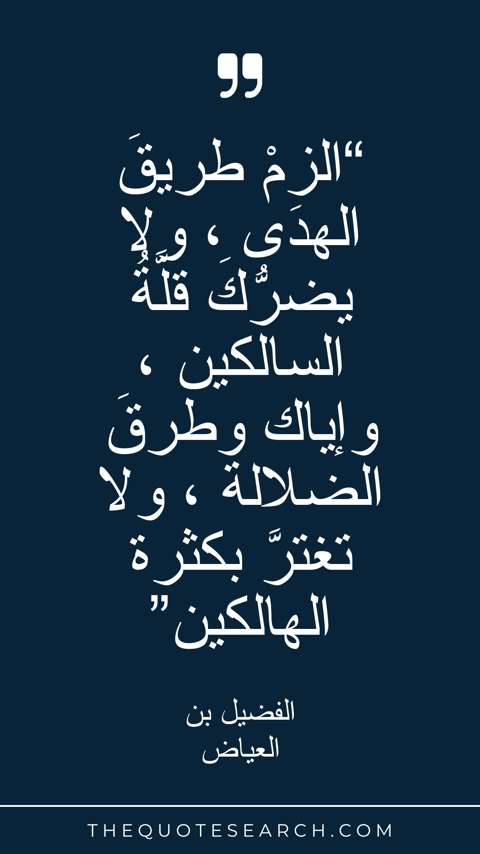 “الزمْ طريقَ الهدَى ، ولا يضرُّكَ قلَّةُ السالكين ، وإياك وطرقَ الضلالة ، ولا تغترَّ بكثرة الهالكين”