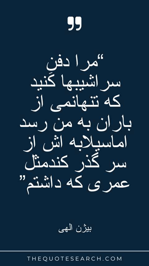“مرا دفنِ سراشیبها کنید که تنهانمی از باران به من رسد اماسیلابه اش از سر گذر کندمثل عمری که داشتم”