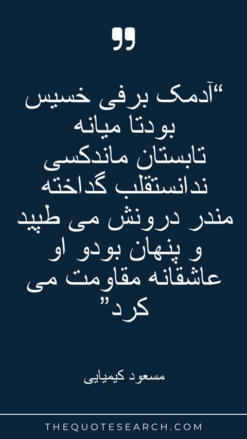 “آدمک برفی خسیس بودتا میانه تابستان ماندکسی ندانستقلب گداخته مندر درونش می طپید و پنهان بودو او عاشقانه مقاومت می کرد”