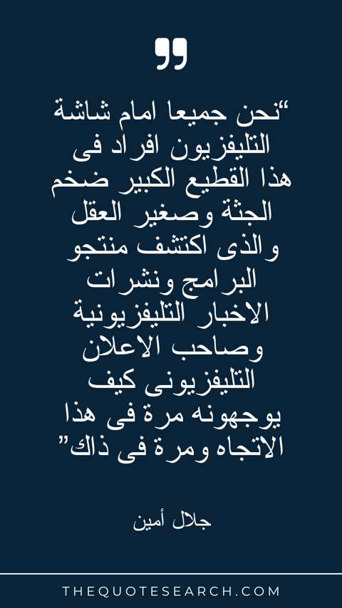 “نحن جميعا امام شاشة التليفزيون افراد فى هذا القطيع الكبير ضخم الجثة وصغير العقل والذى اكتشف منتجو البرامج ونشرات الاخبار التليفزيونية وصاحب الاعلان التليفزيونى كيف يوجهونه مرة فى هذا الاتجاه ومرة فى ذاك”
