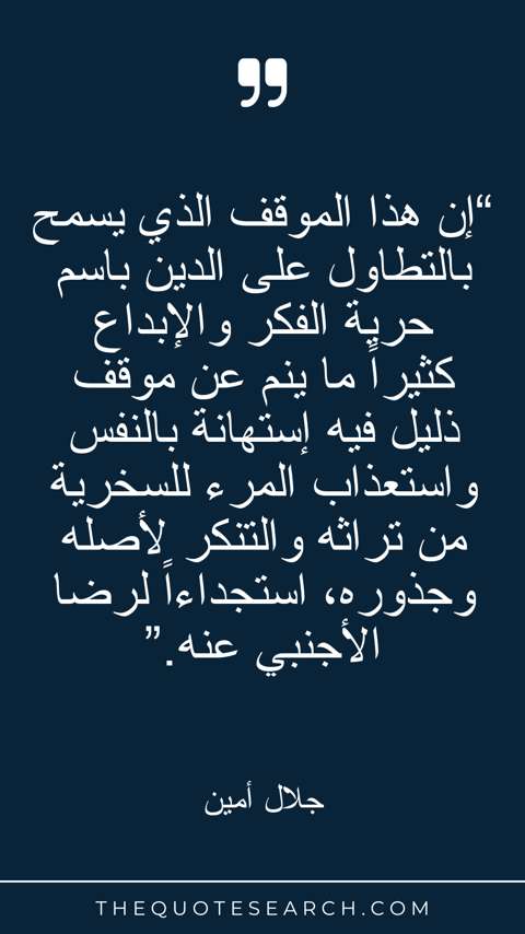 “إن هذا الموقف الذي يسمح بالتطاول على الدين باسم حرية الفكر والإبداع كثيراً ما ينم عن موقف ذليل فيه إستهانة بالنفس واستعذاب المرء للسخرية من تراثه والتنكر لأصله وجذوره، استجداءاً لرضا الأجنبي عنه.”