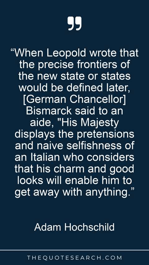 “When Leopold wrote that the precise frontiers of the new state or states would be defined later, [German Chancellor] Bismarck said to an aide, "His Majesty displays the pretensions and naive selfishness of an Italian who considers that his charm and good looks will enable him to get away with anything.”