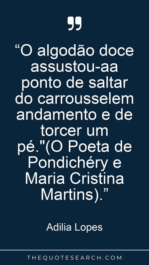 “O algodão doce assustou-aa ponto de saltar do carrousselem andamento e de torcer um pé."(O Poeta de Pondichéry e Maria Cristina Martins).”