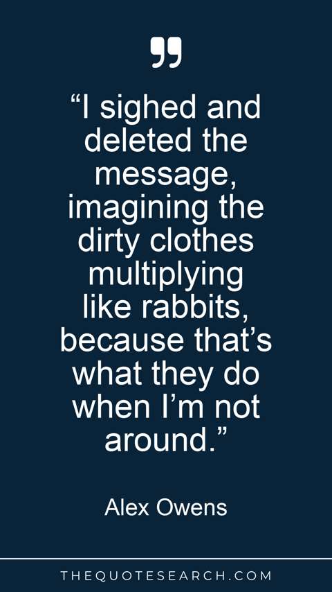 “I sighed and deleted the message, imagining the dirty clothes multiplying like rabbits, because that’s what they do when I’m not around.”