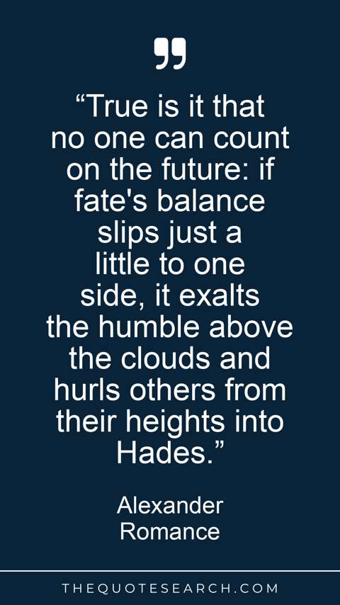 “True is it that no one can count on the future: if fate's balance slips just a little to one side, it exalts the humble above the clouds and hurls others from their heights into Hades.”