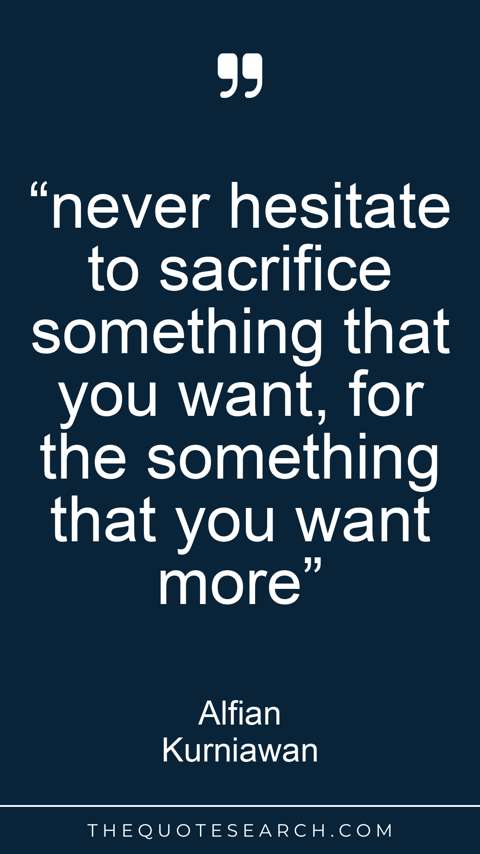“never hesitate to sacrifice something that you want, for the something that you want more”