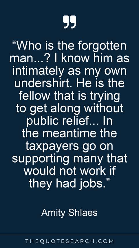 “Who is the forgotten man...? I know him as intimately as my own undershirt. He is the fellow that is trying to get along without public relief... In the meantime the taxpayers go on supporting many that would not work if they had jobs.”
