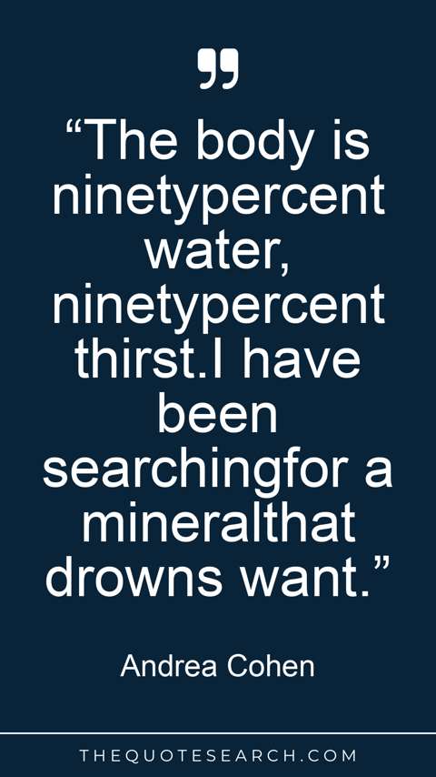 “The body is ninetypercent water, ninetypercent thirst.I have been searchingfor a mineralthat drowns want.”