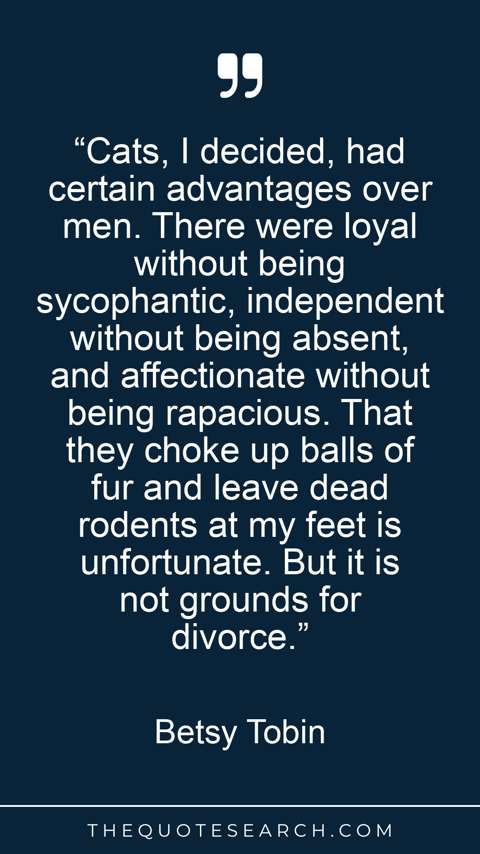 “Cats, I decided, had certain advantages over men. There were loyal without being sycophantic, independent without being absent, and affectionate without being rapacious. That they choke up balls of fur and leave dead rodents at my feet is unfortunate. But it is not grounds for divorce.”