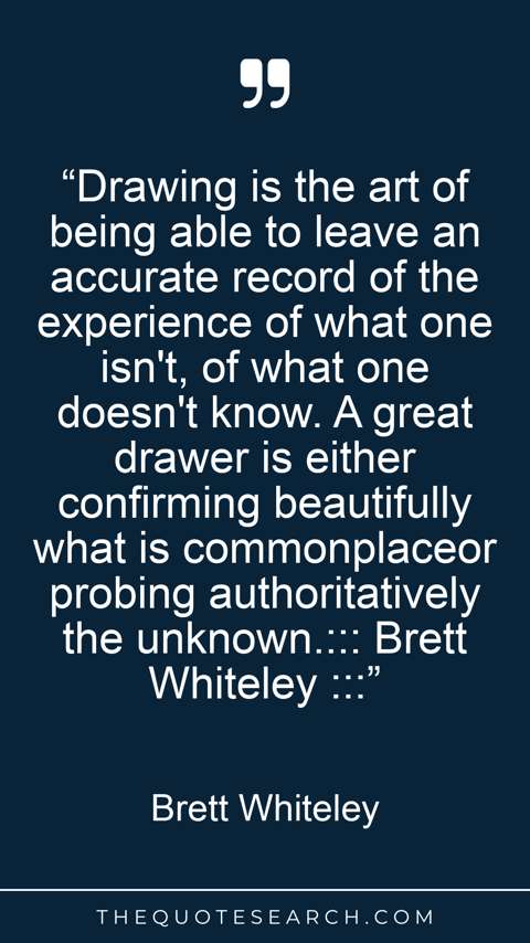 “Drawing is the art of being able to leave an accurate record of the experience of what one isn't, of what one doesn't know. A great drawer is either confirming beautifully what is commonplaceor probing authoritatively the unknown.::: Brett Whiteley :::”