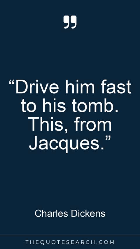 “Thus engaged, with her right elbow supported by her left hand, Madame Defarge said nothing when her lord came in, but coughed just one grain of cough. This, in combination with the lifting of her darkly defined eyebrows over her toothpick by the breadth of a line, suggested to her husband that he would do well to look round the shop among the customers, for any new customer who had dropped in while he stepped over the way.The wine-shop keeper accordingly rolled his eyes about, until they rested upon an elderly gentleman and a young lady, who were seated in a corner. Other company were there: two playing cards, two playing dominoes, three standing by the counter lengthening out a short supply of wine. As he passed behind the counter, he took notice that the elderly gentleman said in a look to the young lady, "This is our man.""What the devil do you do in that galley there?" said Monsieur Defarge to himself; "I don't know you."But, he feigned not to notice the two strangers, and fell into discourse with the triumvirate of customers who were drinking at the counter."How goes it, Jacques?" said one of these three to Monsieur Defarge. "Is all the spilt wine swallowed?""Every drop, Jacques," answered Monsieur Defarge.When this interchange of Christian name was effected, Madame Defarge, picking her teeth with her toothpick, coughed another grain of cough, and raised her eyebrows by the breadth of another line."It is not often," said the second of the three, addressing Monsieur Defarge, "that many of these miserable beasts know the taste of wine, or of anything but black bread and death. Is it not so, Jacques?""It is so, Jacques," Monsieur Defarge returned.At this second interchange of the Christian name, Madame Defarge, still using her toothpick with profound composure, coughed another grain of cough, and raised her eyebrows by the breadth of another line.The last of the three now said his say, as he put down his empty drinking vessel and smacked his lips."Ah! So much the worse! A bitter taste it is that such poor cattle always have in their mouths, and hard lives they live, Jacques. Am I right, Jacques?""You are right, Jacques," was the response of Monsieur Defarge.This third interchange of the Christian name was completed at the moment when Madame Defarge put her toothpick by, kept her eyebrows up, and slightly rustled in her seat."Hold then! True!" muttered her husband. "Gentlemen--my wife!"The three customers pulled off their hats to Madame Defarge, with three flourishes. She acknowledged their homage by bending her head, and giving them a quick look. Then she glanced in a casual manner round the wine-shop, took up her knitting with great apparent calmness and repose of spirit, and became absorbed in it."Gentlemen," said her husband, who had kept his bright eye observantly upon her, "good day. The chamber, furnished bachelor- fashion, that you wished to see, and were inquiring for when I stepped out, is on the fifth floor. The doorway of the staircase gives on the little courtyard close to the left here," pointing with his hand, "near to the window of my establishment. But, now that I remember, one of you has already been there, and can show the way. Gentlemen, adieu!"They paid for their wine, and left the place. The eyes of Monsieur Defarge were studying his wife at her knitting when the elderly gentleman advanced from his corner, and begged the favour of a word."Willingly, sir," said Monsieur Defarge, and quietly stepped with him to the door.Their conference was very short, but very decided. Almost at the first word, Monsieur Defarge started and became deeply attentive. It had not lasted a minute, when he nodded and went out. The gentleman then beckoned to the young lady, and they, too, went out. Madame Defarge knitted with nimble fingers and steady eyebrows, and saw nothing.”
