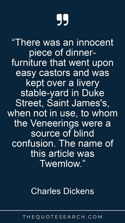 “There was an innocent piece of dinner-furniture that went upon easy castors and was kept over a livery stable-yard in Duke Street, Saint James's, when not in use, to whom the Veneerings were a source of blind confusion. The name of this article was Twemlow.”