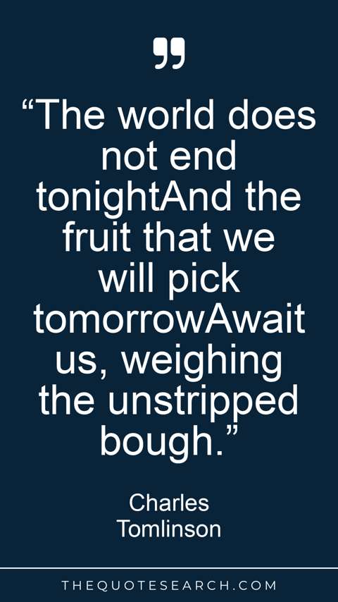 “The world does not end tonightAnd the fruit that we will pick tomorrowAwait us, weighing the unstripped bough.”