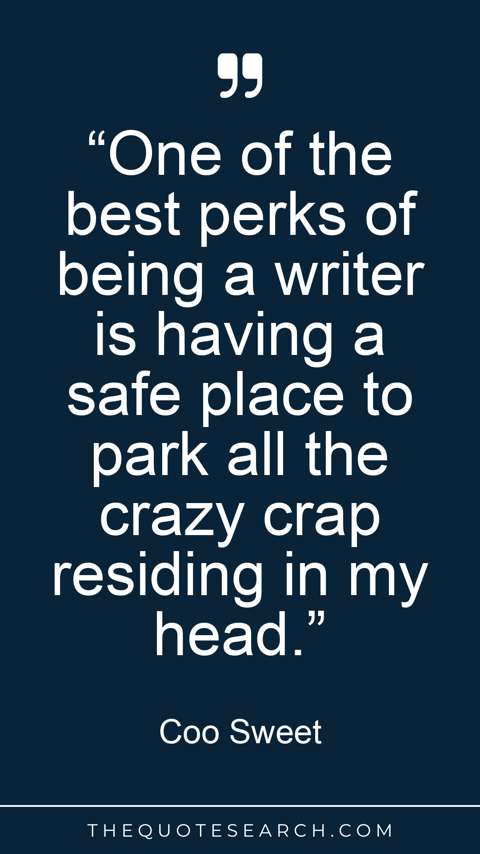 “One of the best perks of being a writer is having a safe place to park all the crazy crap residing in my head.”