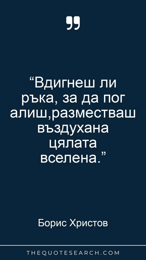 “Вдигнеш ли ръка, за да погалиш,разместваш въздухана цялата вселена.”
