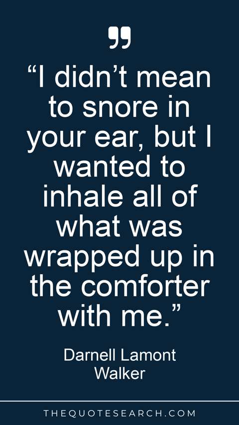 “I didn’t mean to snore in your ear, but I wanted to inhale all of what was wrapped up in the comforter with me.”
