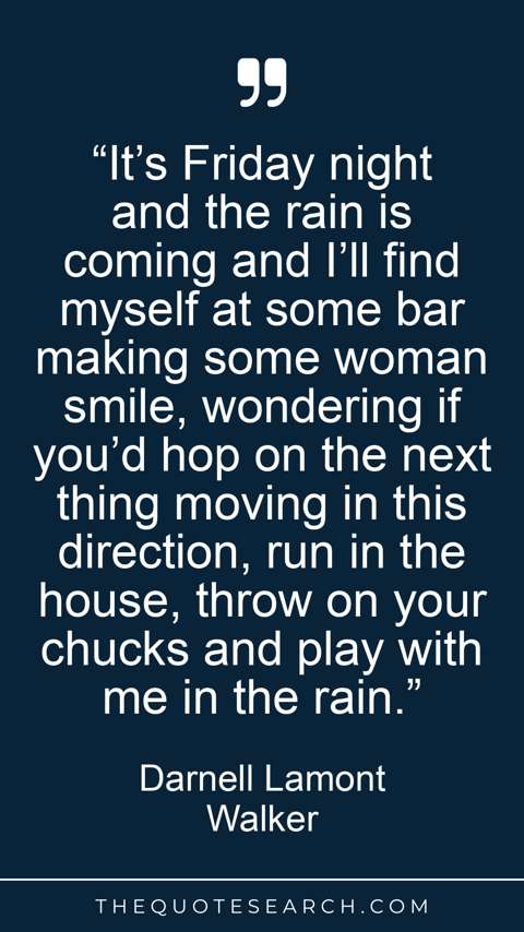 “It’s Friday night and the rain is coming and I’ll find myself at some bar making some woman smile, wondering if you’d hop on the next thing moving in this direction, run in the house, throw on your chucks and play with me in the rain.”