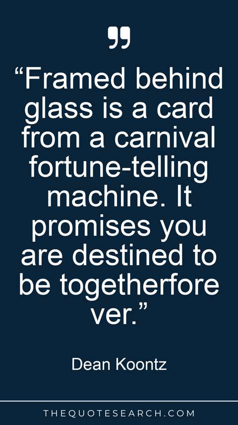 “Framed behind glass is a card from a carnival fortune-telling machine. It promises you are destined to be togetherforever.”