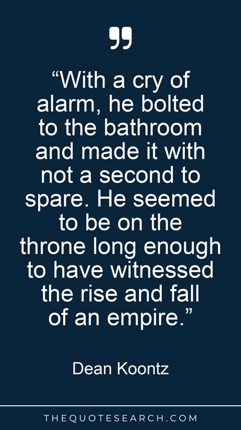“With a cry of alarm, he bolted to the bathroom and made it with not a second to spare. He seemed to be on the throne long enough to have witnessed the rise and fall of an empire.”