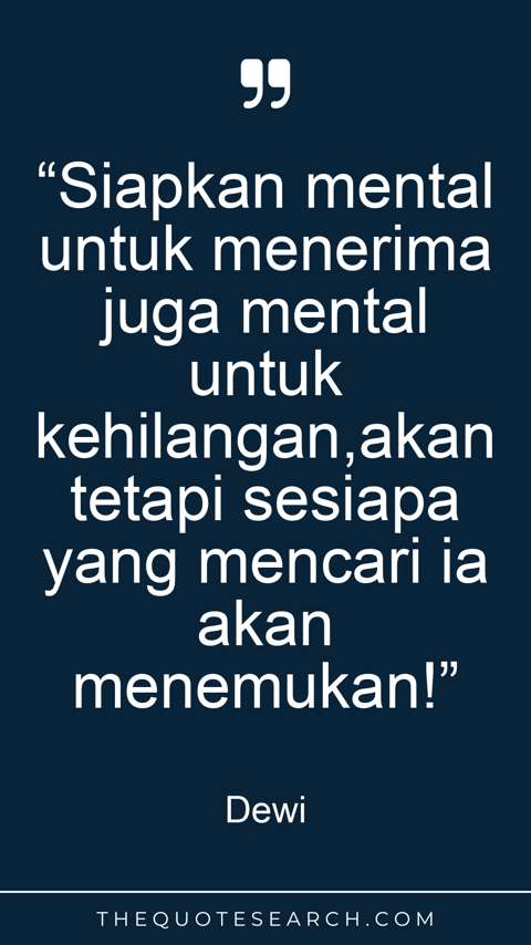 “Siapkan mental untuk menerima juga mental untuk kehilangan,akan tetapi sesiapa yang mencari ia akan menemukan!”
