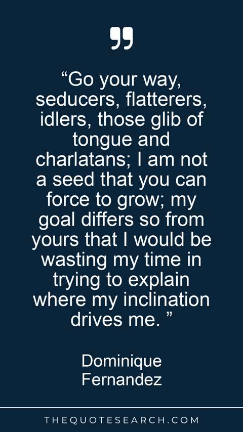 “Go your way, seducers, flatterers, idlers, those glib of tongue and charlatans; I am not a seed that you can force to grow; my goal differs so from yours that I would be wasting my time in trying to explain where my inclination drives me. ”