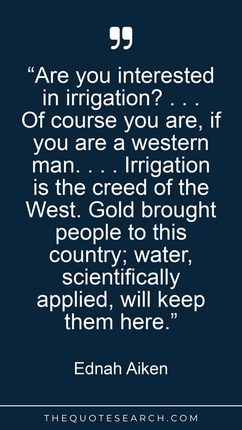 “Are you interested in irrigation? . . . Of course you are, if you are a western man. . . . Irrigation is the creed of the West. Gold brought people to this country; water, scientifically applied, will keep them here.”