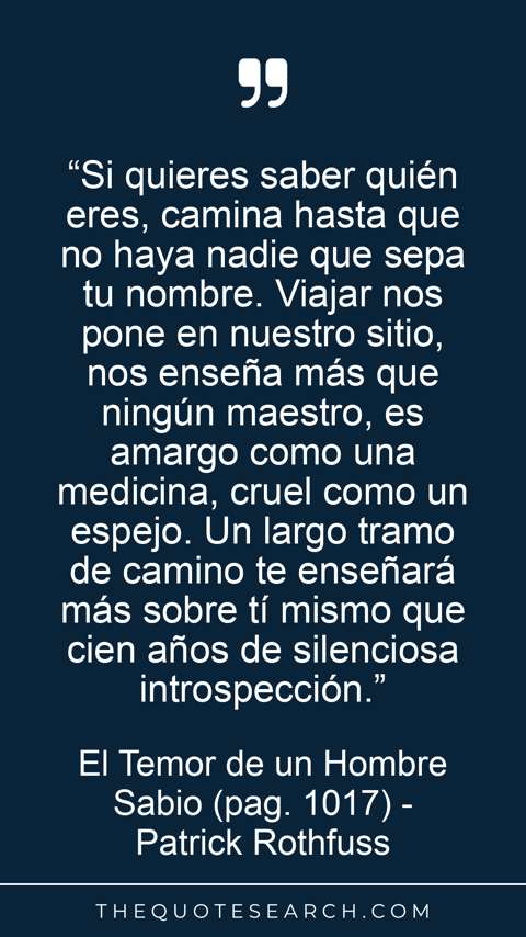 “Si quieres saber quién eres, camina hasta que no haya nadie que sepa tu nombre. Viajar nos pone en nuestro sitio, nos enseña más que ningún maestro, es amargo como una medicina, cruel como un espejo. Un largo tramo de camino te enseñará más sobre tí mismo que cien años de silenciosa introspección.”