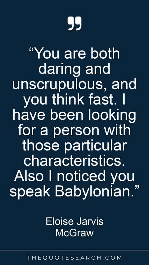 “You are both daring and unscrupulous, and you think fast. I have been looking for a person with those particular characteristics. Also I noticed you speak Babylonian.”