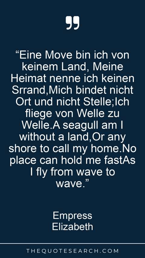 “Eine Move bin ich von keinem Land, Meine Heimat nenne ich keinen Srrand,Mich bindet nicht Ort und nicht Stelle;Ich fliege von Welle zu Welle.A seagull am I without a land,Or any shore to call my home.No place can hold me fastAs I fly from wave to wave.”