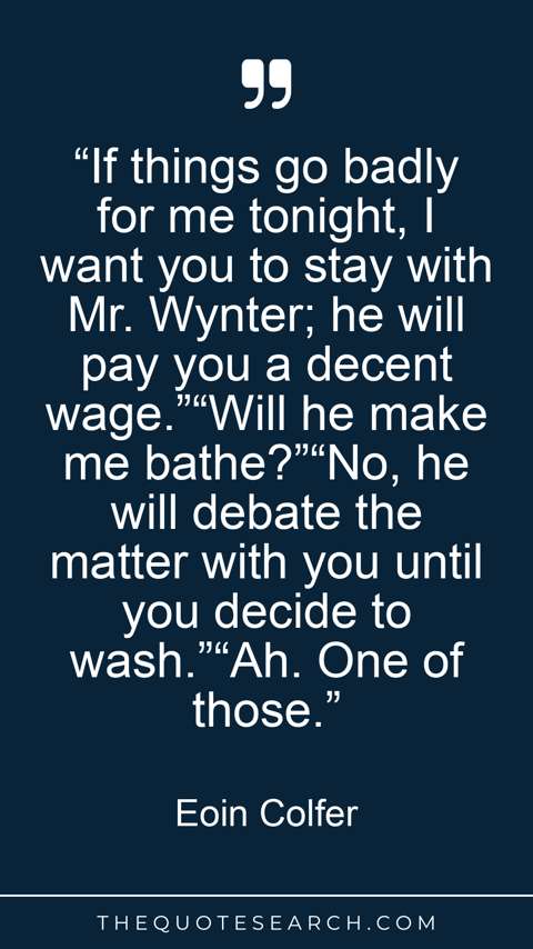 “Holly clambered after him, struggling up the human-size steps. "Wait! Just wait," she called, overtaking Artemis and looking him in the eye from one step up. "I know you, Artemis. You like to play your genius card close to your chest until the big reveal. And that's worked out for us so far. But this time you need to let me in. I can help. So, tell me the truth, do you have a plan?"Artemis met his friend's gaze and lied to her face. "No," he said. "No plan.”