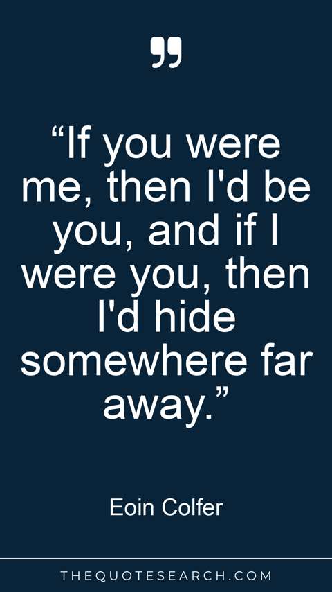 “If you were me, then I'd be you, and if I were you, then I'd hide somewhere far away.”