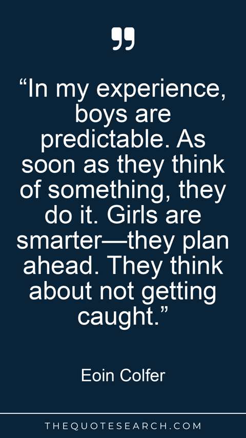 “In my experience, boys are predictable. As soon as they think of something, they do it. Girls are smarter—they plan ahead. They think about not getting caught.”