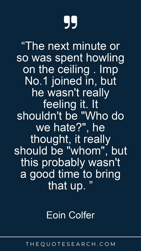“The next minute or so was spent howling on the ceiling . Imp No.1 joined in, but he wasn't really feeling it. It shouldn't be "Who do we hate?", he thought, it really should be "whom", but this probably wasn't a good time to bring that up. ”
