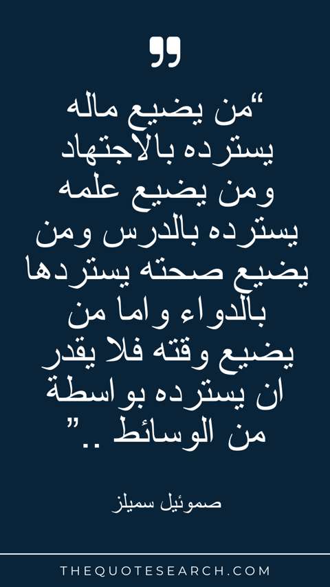 “من يضيع ماله يسترده بالاجتهاد ومن يضيع علمه يسترده بالدرس ومن يضيع صحته يستردها بالدواء واما من يضيع وقته فلا يقدر ان يسترده بواسطة من الوسائط ..”