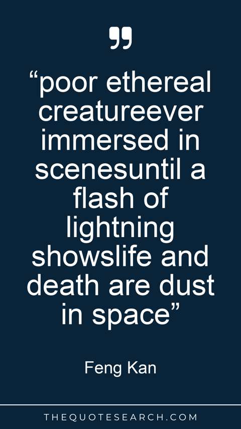 “poor ethereal creatureever immersed in scenesuntil a flash of lightning showslife and death are dust in space”