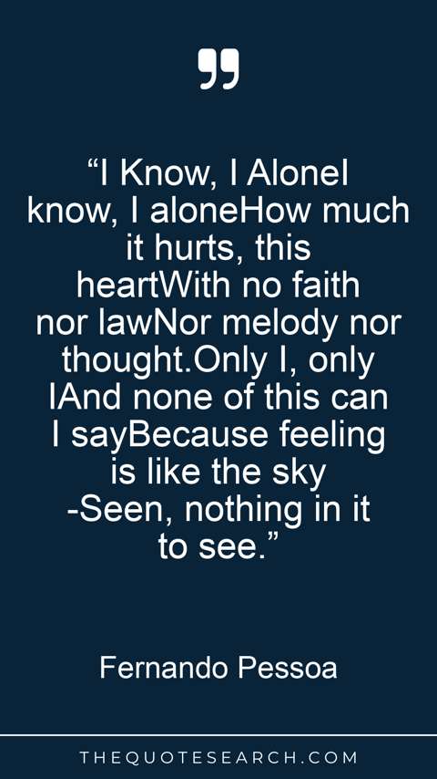 “I Know, I AloneI know, I aloneHow much it hurts, this heartWith no faith nor lawNor melody nor thought.Only I, only IAnd none of this can I sayBecause feeling is like the sky -Seen, nothing in it to see.”