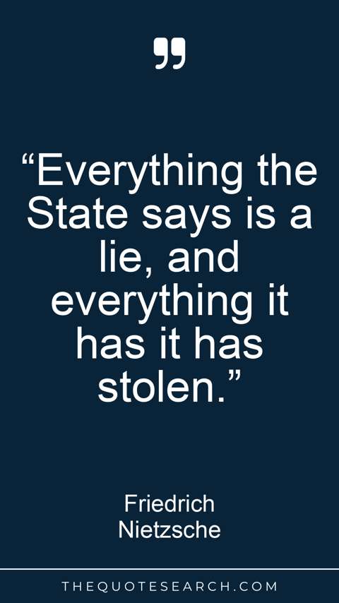“The state lieth in all languages of good and evil; and whatever it saith it lieth; and whatever it hath it hath stolen.”