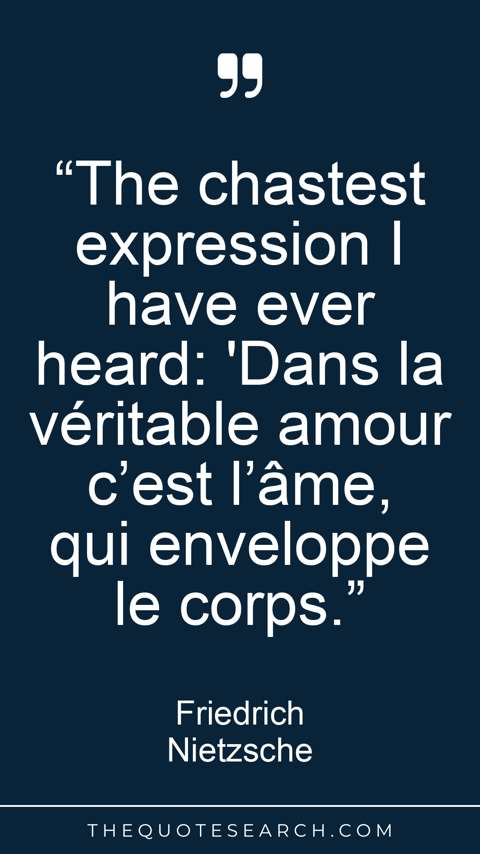 “The chastest expression I have ever heard: 'Dans la véritable amour c’est l’âme, qui enveloppe le corps.”
