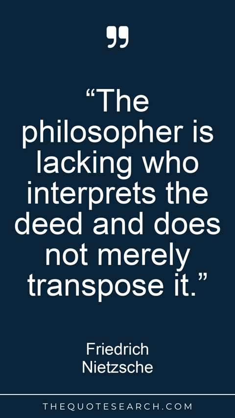 “The philosopher is lacking who interprets the deed and does not merely transpose it.”