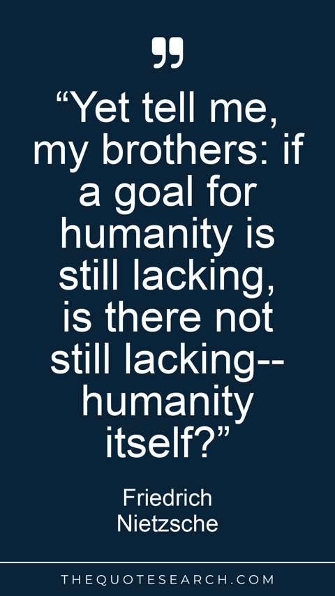 “Yet tell me, my brothers: if a goal for humanity is still lacking, is there not still lacking--humanity itself?”