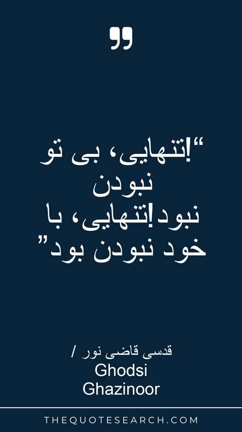“من با خود بیگانه بودم و شعر من فریاد غربتم بودمن سنگ و سیم بودم و راه کوره های تفکیک رانمی دا نستماما آنها وصله ی خشم یکدیگر بودنددر تاریکی دست یکدیگر را فشرده بودندزیرا که بی کسی، آنان رابه انبوهی خانواده ی بی کسان افزوده بود....آنان مرگ را به ابدیت زیست گره می زدند....و امشب که باد ها ماسیده اندگذر کوچه های بلند حصار تنهایی من پر کینه می تپدکوبنده نابهنگام درهای قلب من کیست؟”