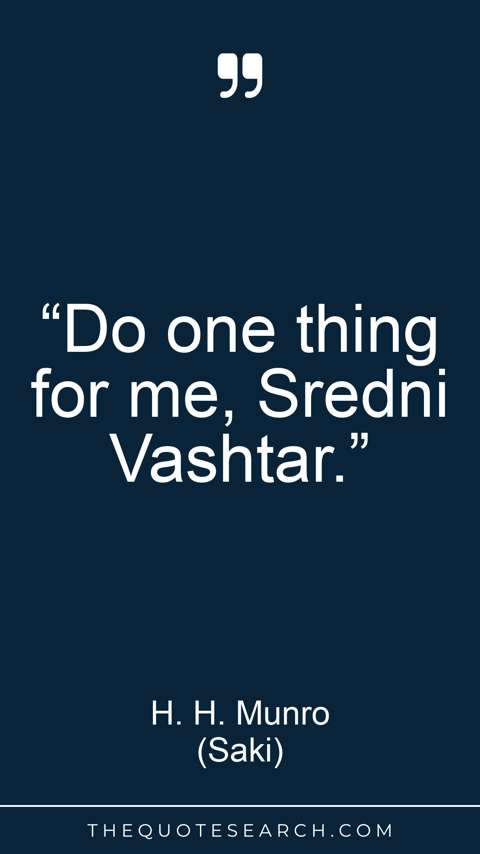 “And in the sting and misery of his defeat, he began to chant loudly and defiantly the hymn of his threatened idol:Sredni Vashtar went forth,His thoughts were red thoughts and his teeth were white.His enemies called for peace, but he brought them death.Sredni Vashtar the Beautiful.”