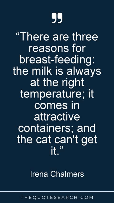 “There are three reasons for breast-feeding: the milk is always at the right temperature; it comes in attractive containers; and the cat can't get it.”