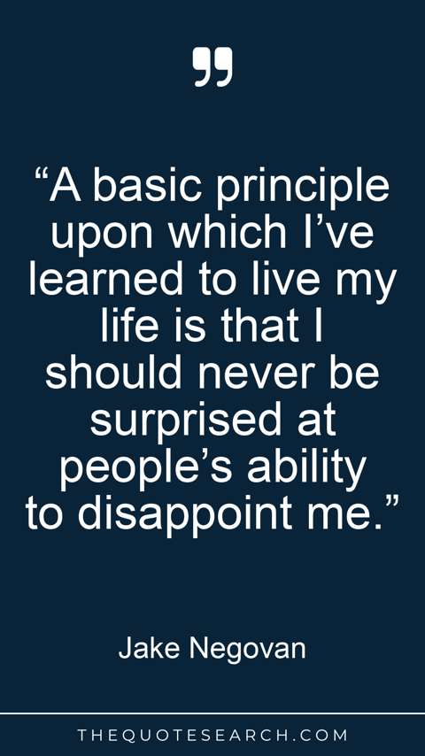 “A basic principle upon which I’ve learned to live my life is that I should never be surprised at people’s ability to disappoint me.”