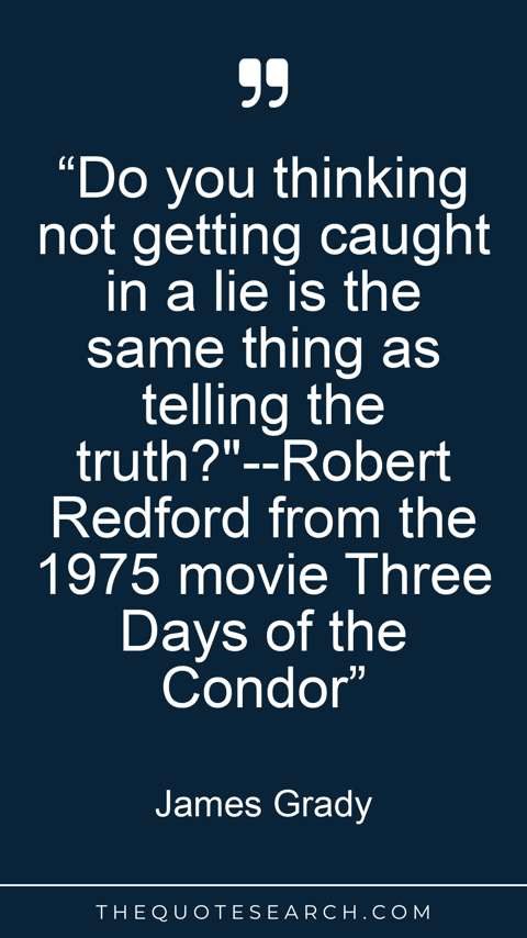 “Do you thinking not getting caught in a lie is the same thing as telling the truth?"--Robert Redford from the 1975 movie Three Days of the Condor”
