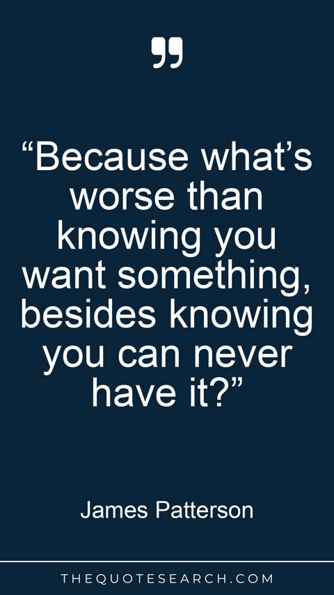 “Because what’s worse than knowing you want something, besides knowing you can never have it?”