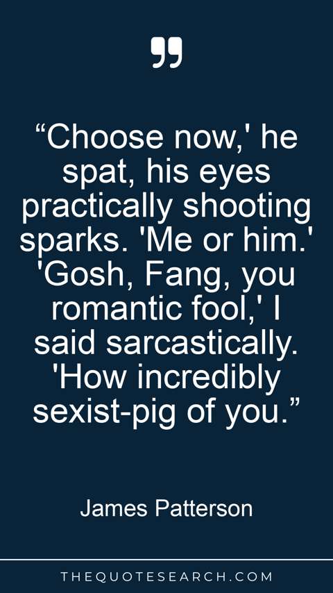 “Choose now,' he spat, his eyes practically shooting sparks. 'Me or him.' 'Gosh, Fang, you romantic fool,' I said sarcastically. 'How incredibly sexist-pig of you.”