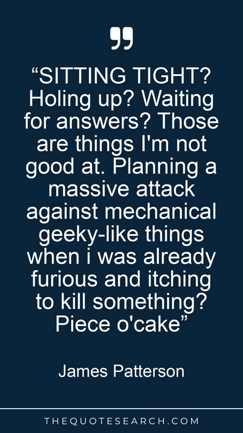 “SITTING TIGHT? Holing up? Waiting for answers? Those are things I'm not good at. Planning a massive attack against mechanical geeky-like things when i was already furious and itching to kill something? Piece o'cake”