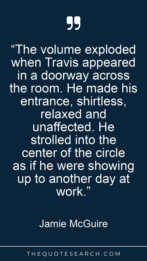 “Travis grabbed my face and planted his mouth on mine, and then he lifted me off the floor, setting me on the counter. His tongue begged entrance into my mouth, and when I let him in, he moaned.His fingers dug into my hips, pulling me closer. “You are so fucking hot when you’re mad,” he said against my lips.”